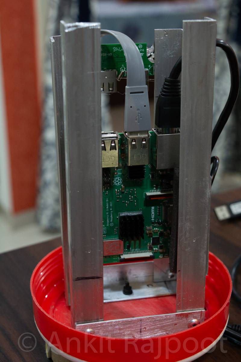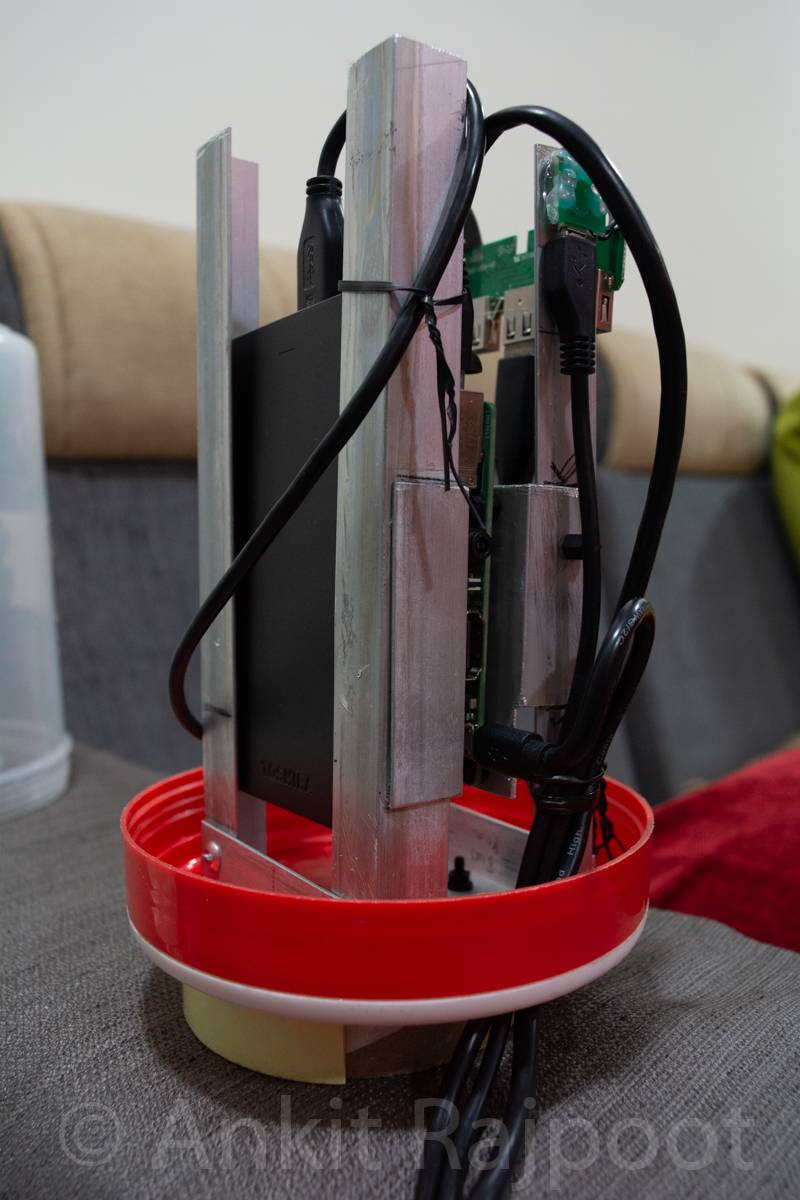 As you can see in the pictures above, the fan is missing because it’s on its way from China. I will update this post with new pics once I have that installed. But, before that, I would have to figure out whether to use it as an intake or exhaust. In any case, I would have to make some holes at the top of the outer shell. Also, the cable situation needs improvement. There are 3 cables coming out of the base right now. I want to keep it to a maximum of two: one for power and one for LAN. I am also exploring the possibility of fixing female LAN and micro USB connectors to the base. The base also needs some decent legs.