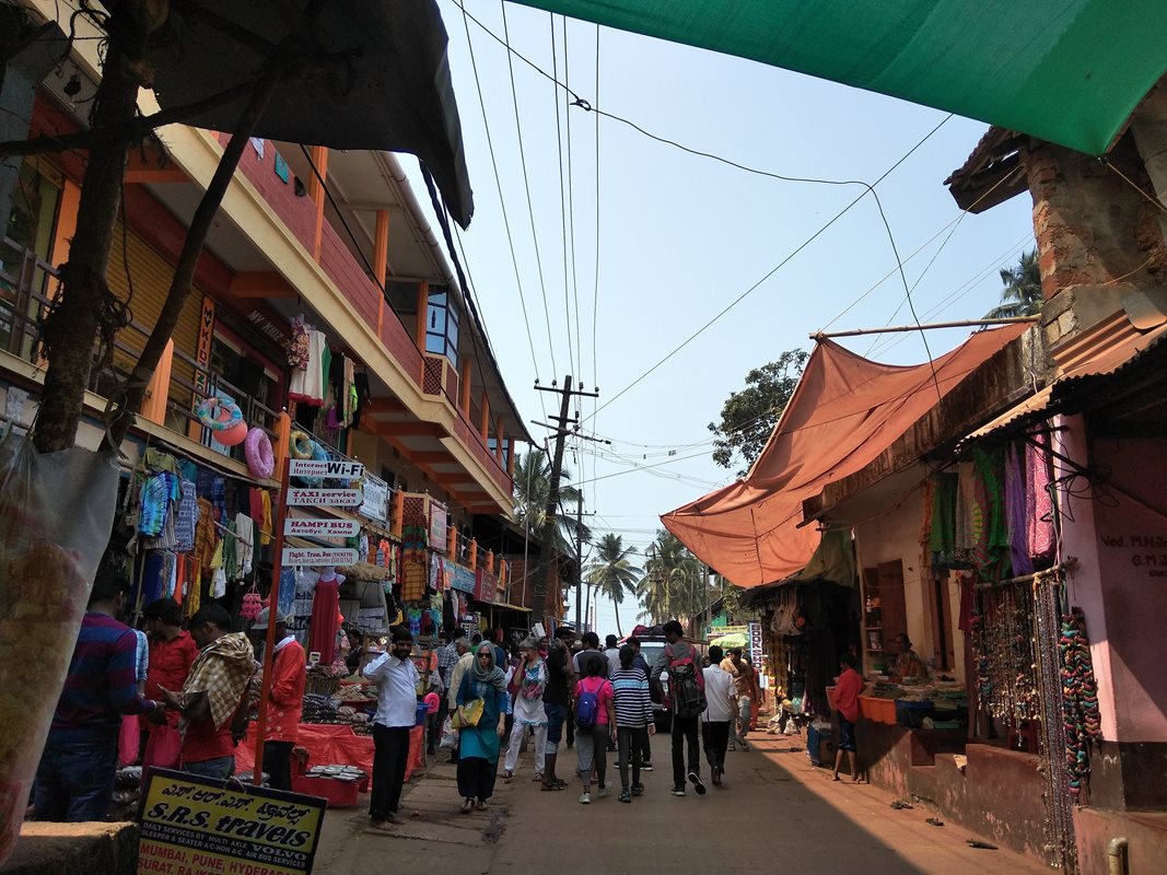 We reached Gokarna town at about 12:00 PM. Like any seasoned traveler, we were just following GMaps and had navigated for the beach parking. But after entering the town, Maps went crazy and started rerouting every 10 seconds. I didn’t wanna get stuck on the thin-as-hair roads and cause a traffic jam in an unknown place. After spending a few minutes driving around, we spotted a bus stand and decided to follow other vehicles going in. We found some space outside the exit gate of the bus station where other cars were also parked. We decided to park there and headed to the beach on foot. The beach was about 1 kilometer from where we parked.